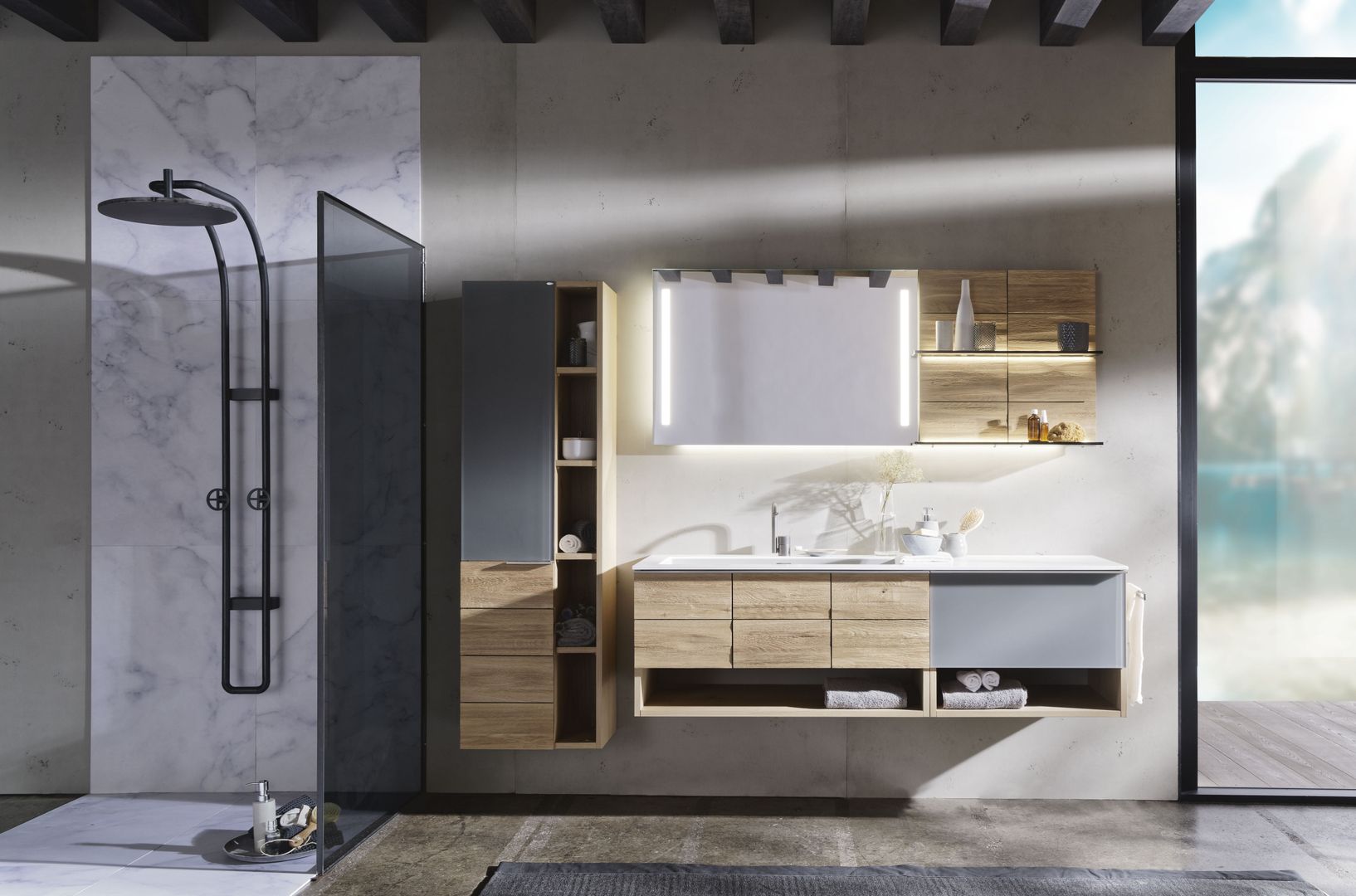Unterschiedlichste Möglichkeiten prägen hier den Stil und das Ambiente. Hier können Sie Ihrer Kreativität freien Lauf lassen und aus einer breiten Palette wählen: Von Echtholz bis zu großformatigen Fliesen und vom Wandputz bis zu Natursteinen und Glas.