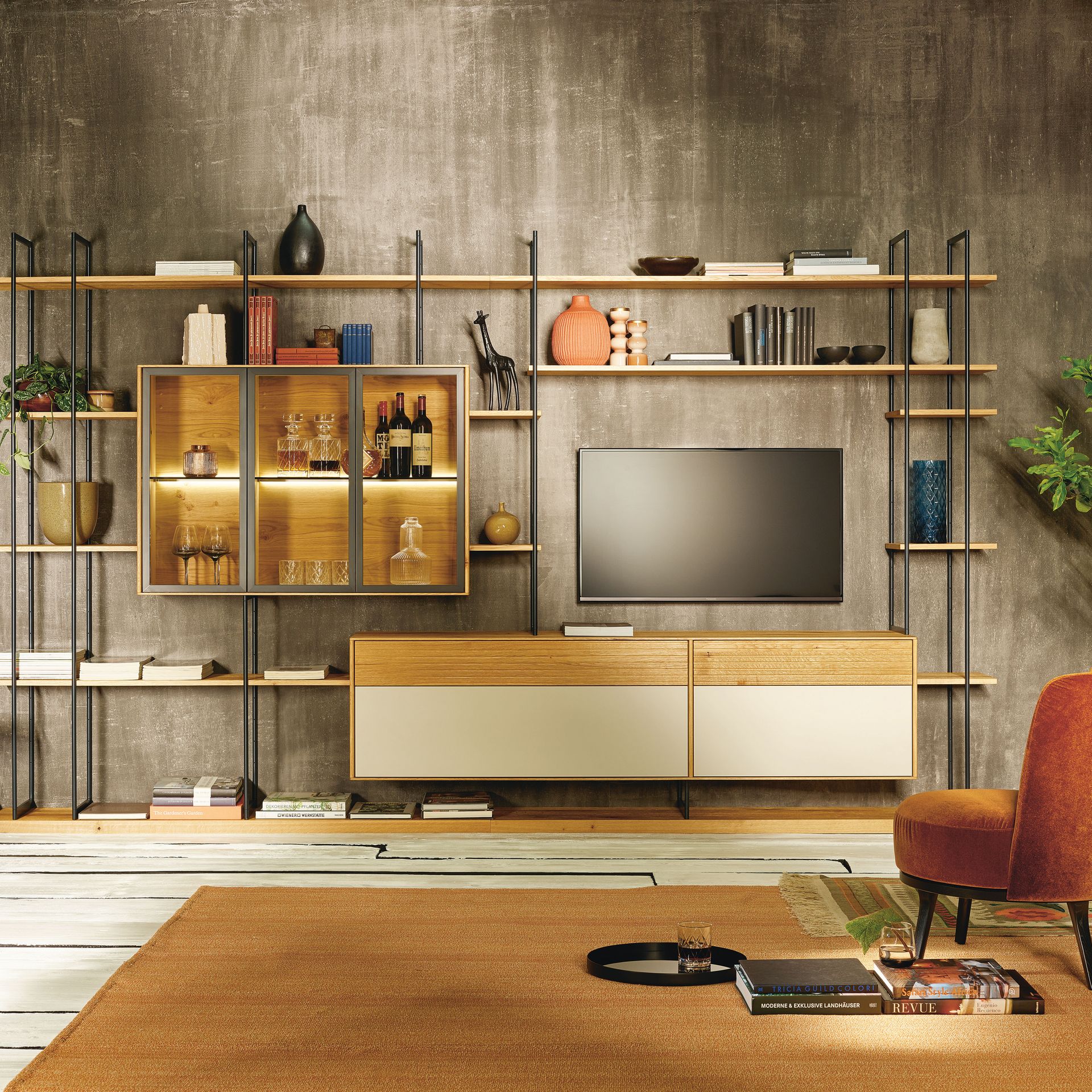 Im Wohnzimmer darf es auch ein bisschen mehr sein. Purismus ist das Eine, der topaktuelle Trend nach üppiger Deko das Andere. Es muss nicht immer schlicht sein und weniger ist auch nicht immer mehr. Deshalb halten auch wieder Samt, Seide und Brokat Einzug in unsere Wohnzimmer. Dazu gesellen sich warme Holztöne bei Regalen, Kommoden, Vitrinen und TV-Möbel.